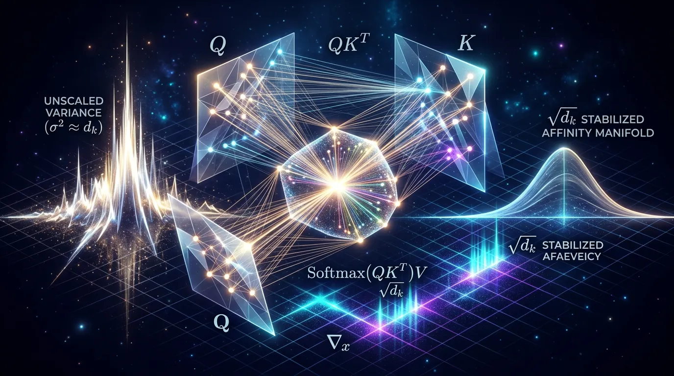 Master the mechanics of attention. Derive dot-product variance, prove how 1/√dk scaling prevents softmax saturation, and analyze the Jacobian to ensure stable gradient flow in Transformers.