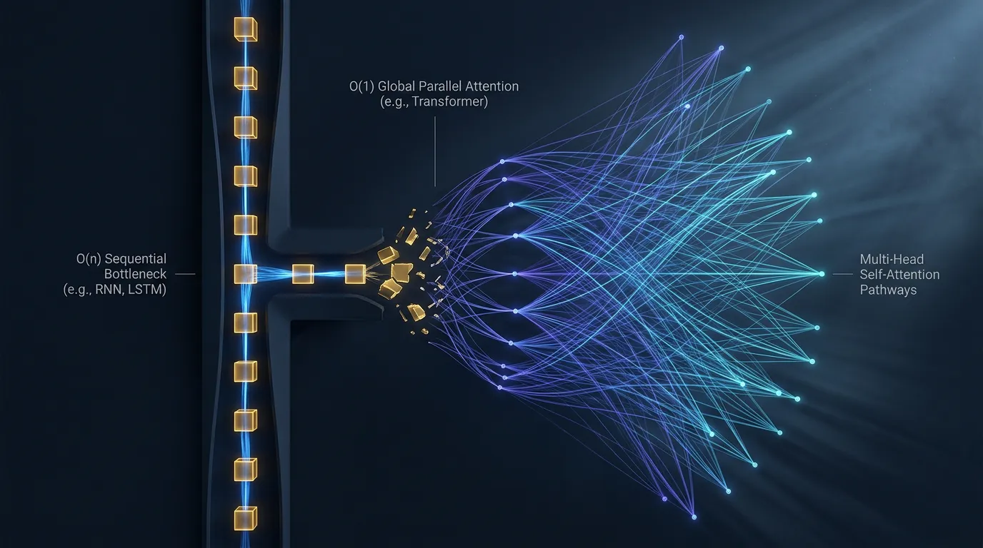 Break the sequential bottleneck! Compare RNN O(n) constraints with Transformer parallelization. Analyze hardware efficiency and the shift to self-attention.