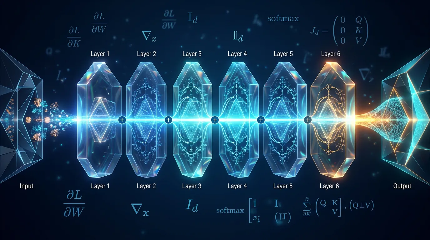 Analyze Jacobian gradient flow, stabilize signals with LayerNorm, and master causal masking to ensure architectural stability and efficient training.