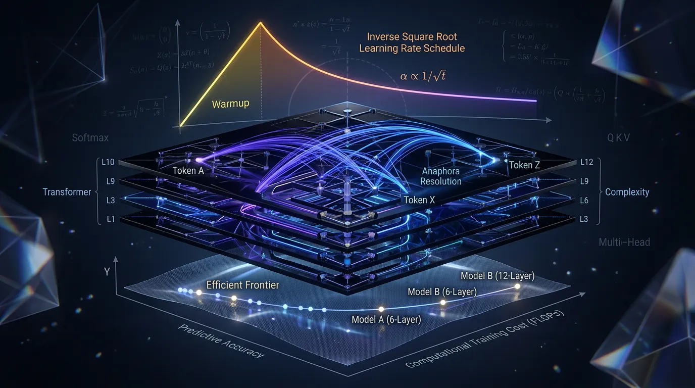 Analyze Transformer Pareto efficiency on WMT benchmarks. Learn to optimize training with custom LR schedulers and visualize emergent linguistic structures.